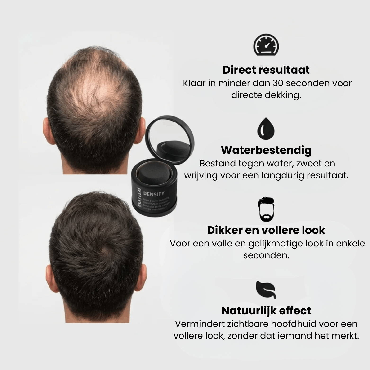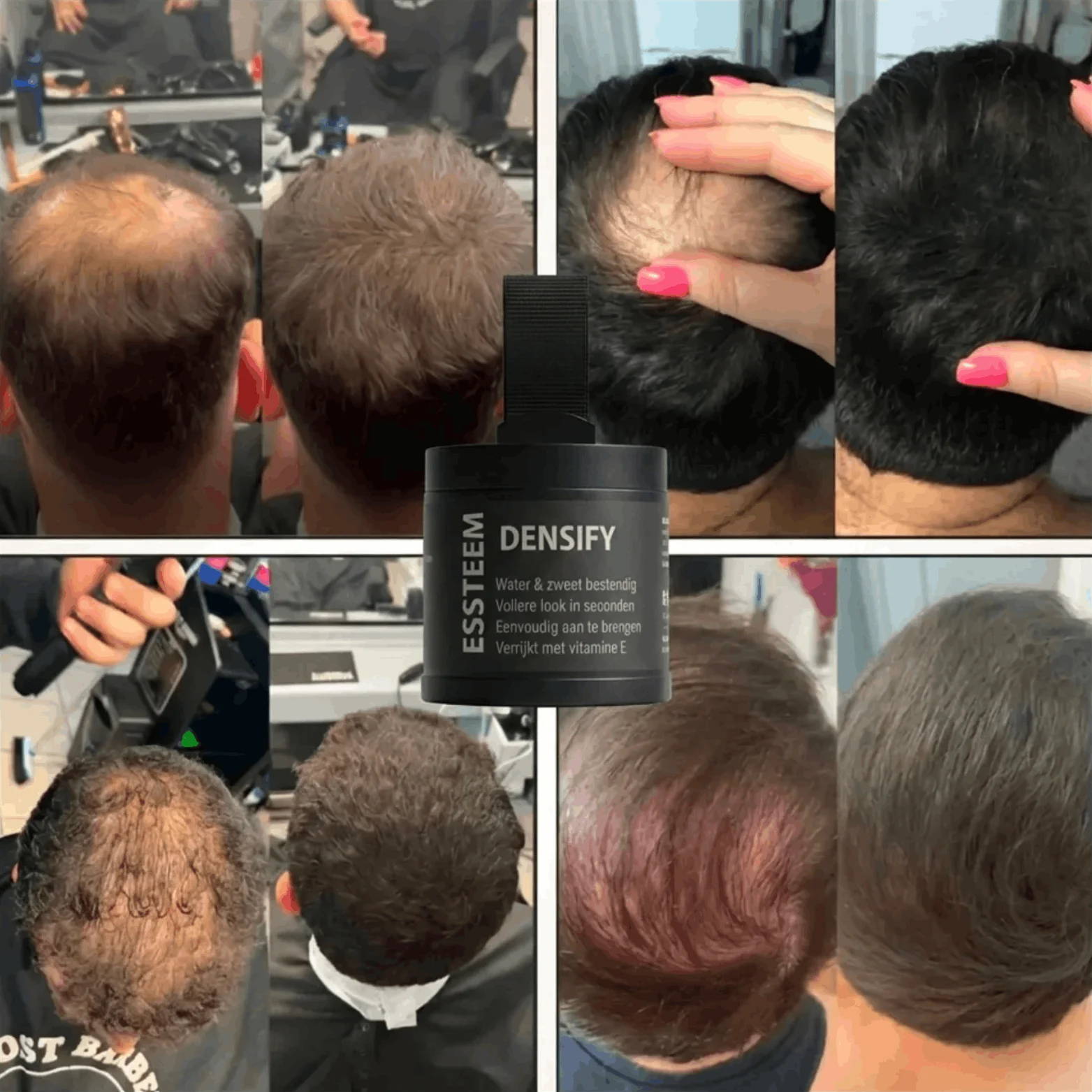 Het ESSTEEM™ DENSIFY Powder vermindert zichtbare hoofdhuid en laat je haar er direct voller uitzien, zodat je weer met een goed gevoel de deur uit kan!